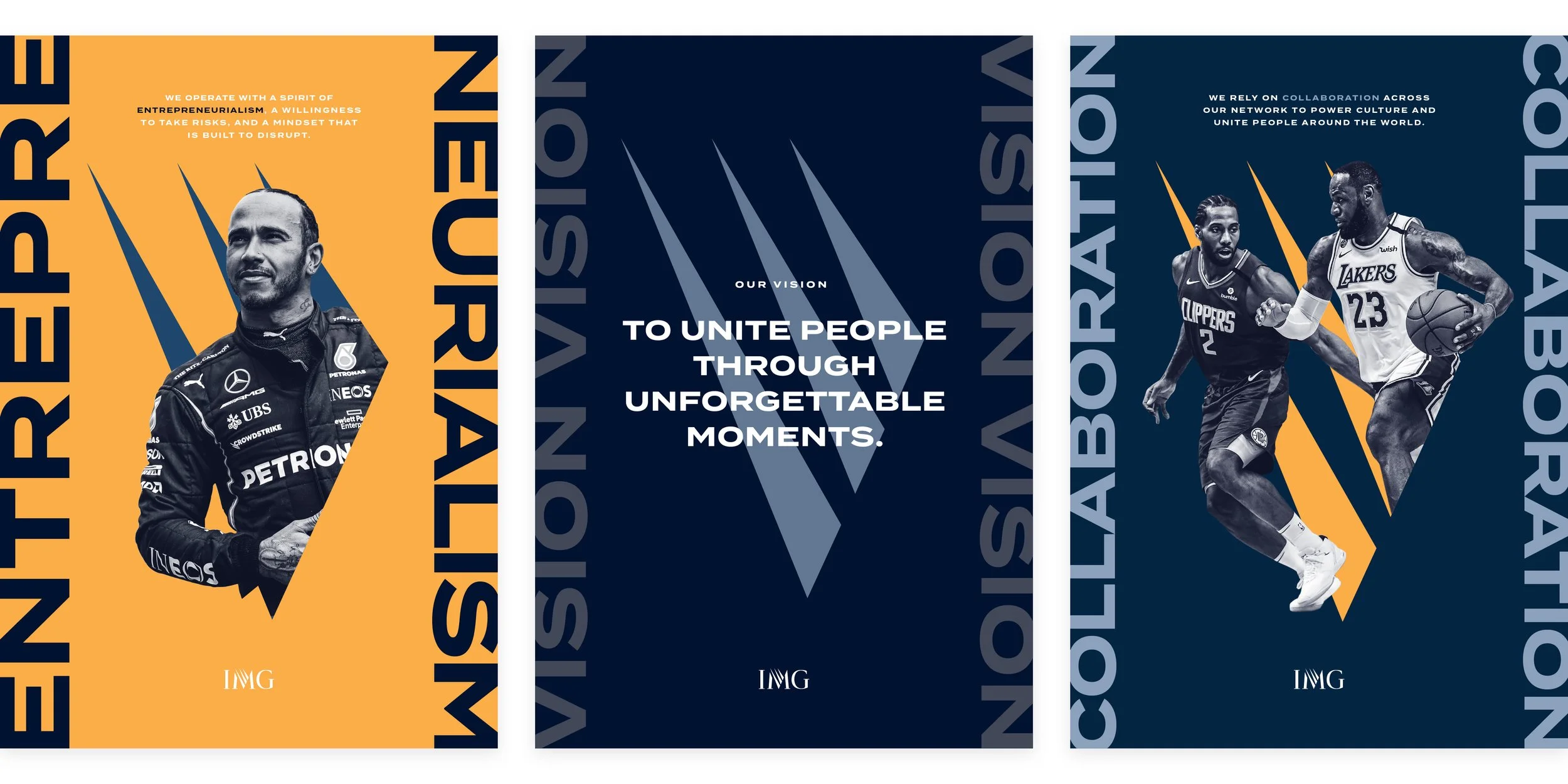 IMG is a global sports, media and events company, but was struggling with having a consistent brand voice. There was a need for brand guidelines to be developed in order to create consistency across multiple touchpoints.